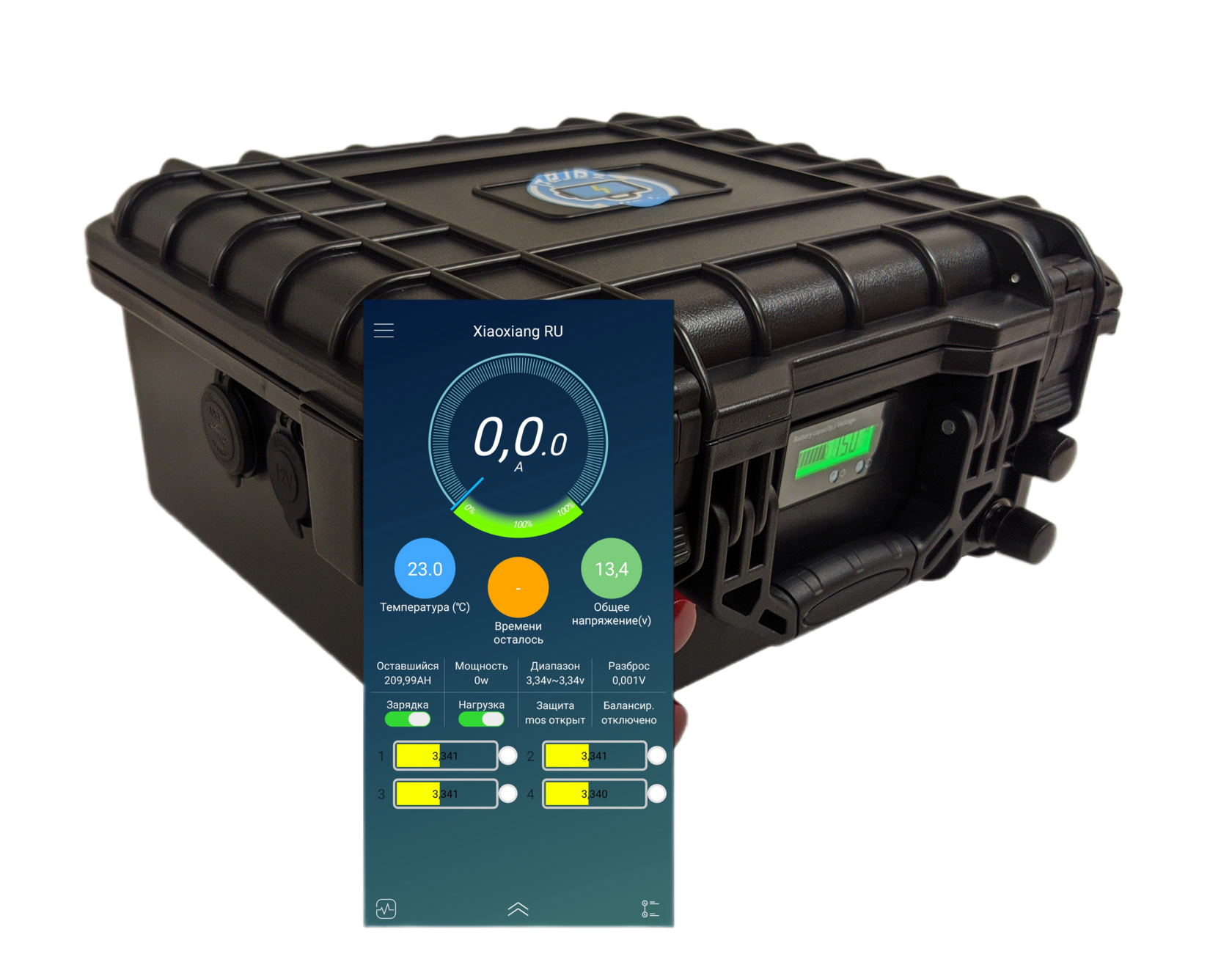 ✔️ Снаружи цветной Smart дисплей JBD с точными показаниями: остаточного заряда в % и шкалой заряда, а так же ток нагрузки в амперах, температура внутри кейса и напряжение аккумулятора. Дисплей подключается напрямую к BMS , без всяких дополнительных шунтов, которые могут нагреваться при больших токах.